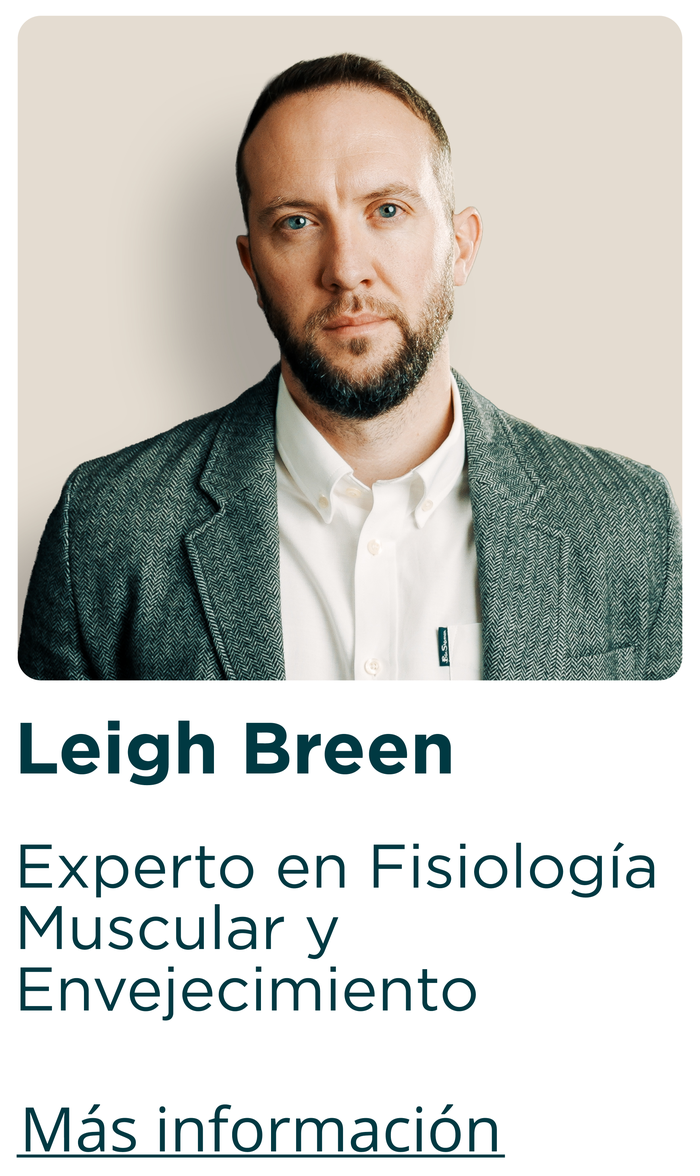 Professor Leigh Breen – Leigh es especialista en fisiología muscular y envejecimiento, y nos ayuda a adelantarnos en el desarrollo de suplementos que mantienen la fuerza y la movilidad con el paso del tiempo.