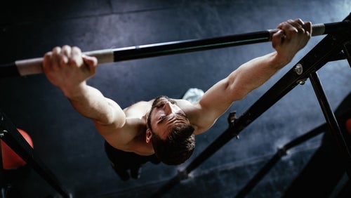 - Sujeta una barra con ambas manos, pero esta vez con un agarre en pronación.