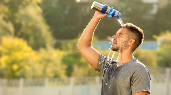 Es normal perder agua corporal a través de la sudoración durante el ejercicio, y el aumento de la actividad metabólica en los músculos también produce un aumento de la temperatura corporal. Mantenerse bien hidratado ayuda al cuerpo a regular su temperatura, lo que se conoce como termorregulación, una parte de la homeostasis. Cuando el cuerpo no está bien hidratado, es incapaz de enfriarse como debería, lo que provoca hipertermia, es decir, un aumento excesivo de la temperatura corporal.
