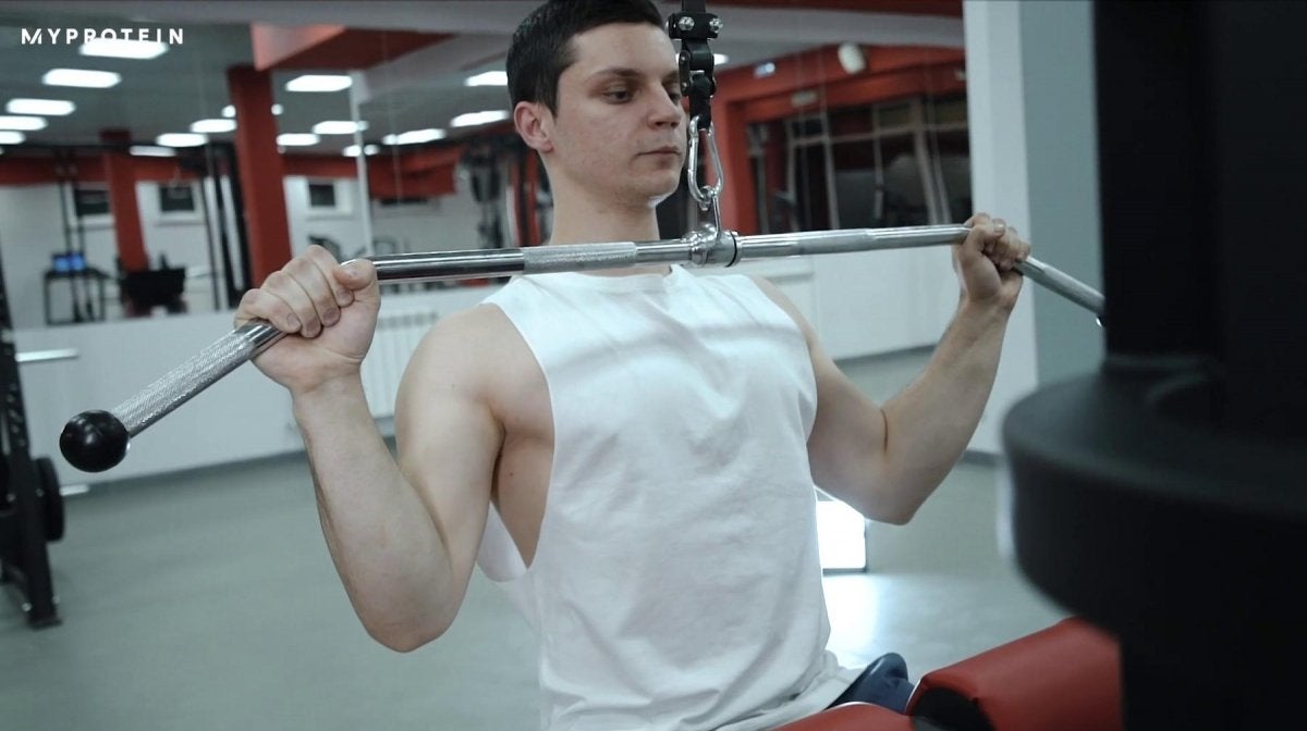 Esta es una clara señal de que estás moviendo demasiado peso para ti. Si intentas mover un peso excesivo, mientras tiras de la barra hacia el pecho, los hombros se moverán hacia delante. Durante la ejecución, los omóplatos tienen que estar bajos y los codos a los lados del cuerpo.