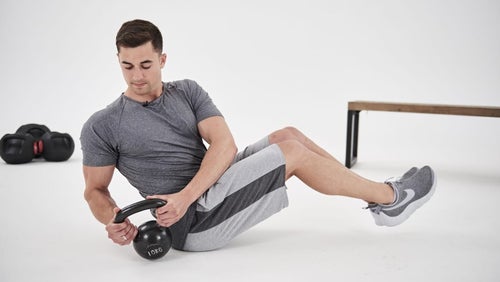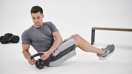 Ponte en posición de flexión con las piernas separadas más del ancho de los hombros y prepárate para sentir como queman tus oblicuos. Deja una pesa rusa apoyada en el suelo a tu izquierda (a la altura del esternón) y arrástrala con la mano derecha hacia el lado derecho de tu cuerpo, en un movimiento controlado pero intenso. Repite el proceso con ambos lados las veces indicadas y concéntrate en no mover las caderas y los hombros.