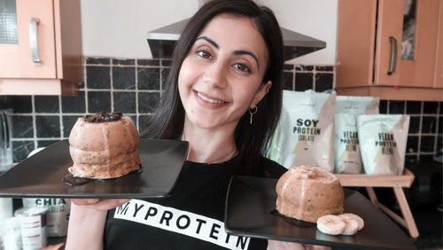 2 cazos de Impact Whey Protein (sabor Rocky Road) 160 g de copos de avena - 10 g cacao orgánico en polvo