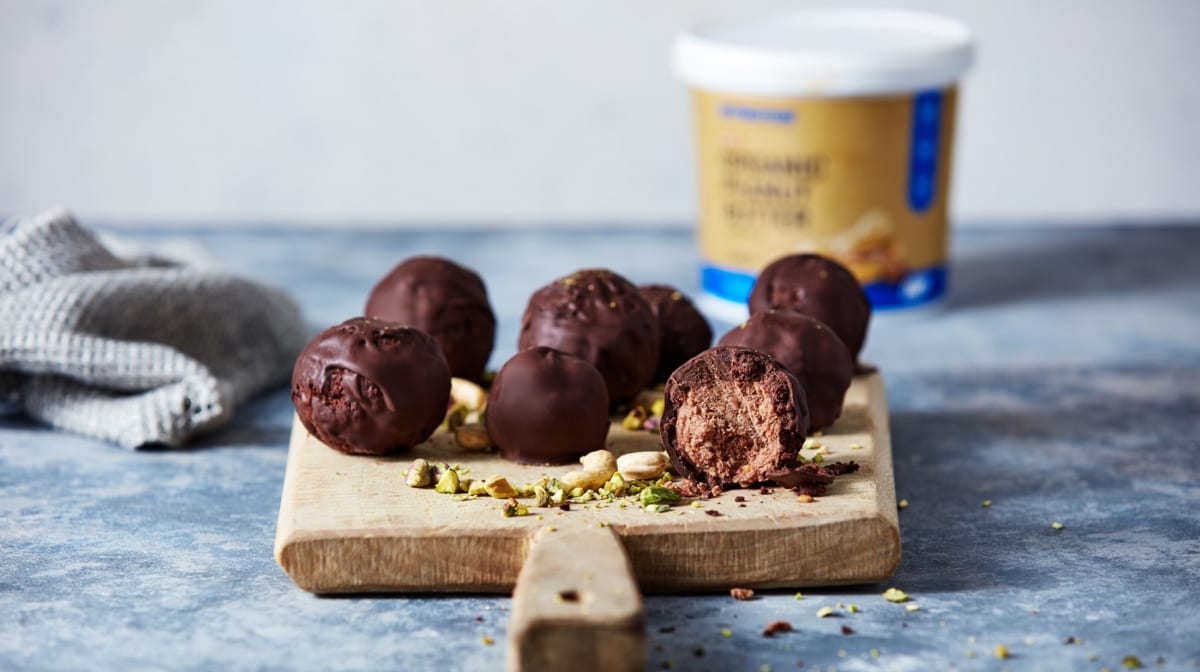 Bolitas proteicas de mantequilla de cacahuete y miel