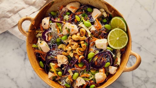 Esta deliciosa ensalada thai de pollo con noodles es la receta baja en carbohidratos perfecta para saciar tu apetito cuando estás a dieta y llevas un control de la ingesta de calorías.