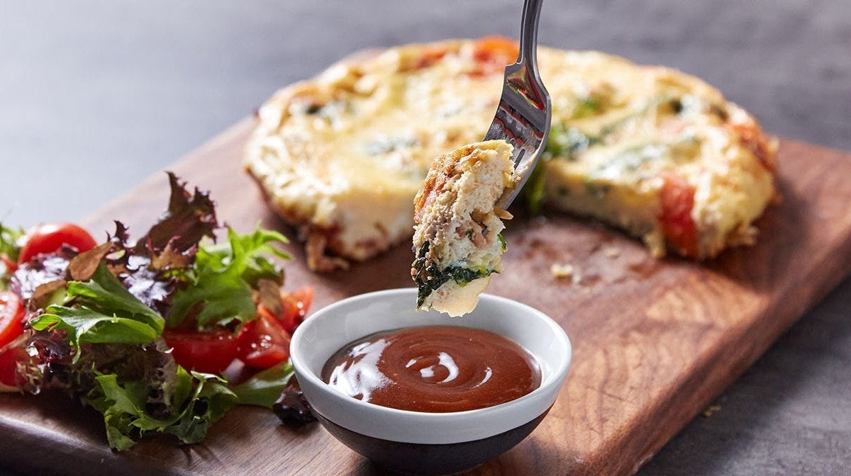 Pasa la tortilla a un plato y acompáñala con un bol de Salsa sin Azúcar BBQ para mojar. ¡Bon appetit!
