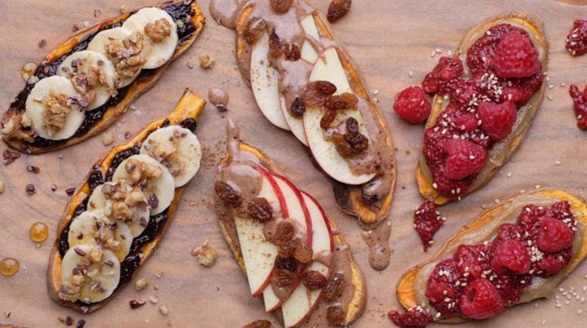 ¿Te aburre comer siempre lo mismo para desayunar? Déjame decirte que, a partir de ahora podrás deleitar tu paladar cada mañana con nuevas recetas como estas deliciosas y nutritivas tostadas de boniato con mantequilla de almendra y manzana.